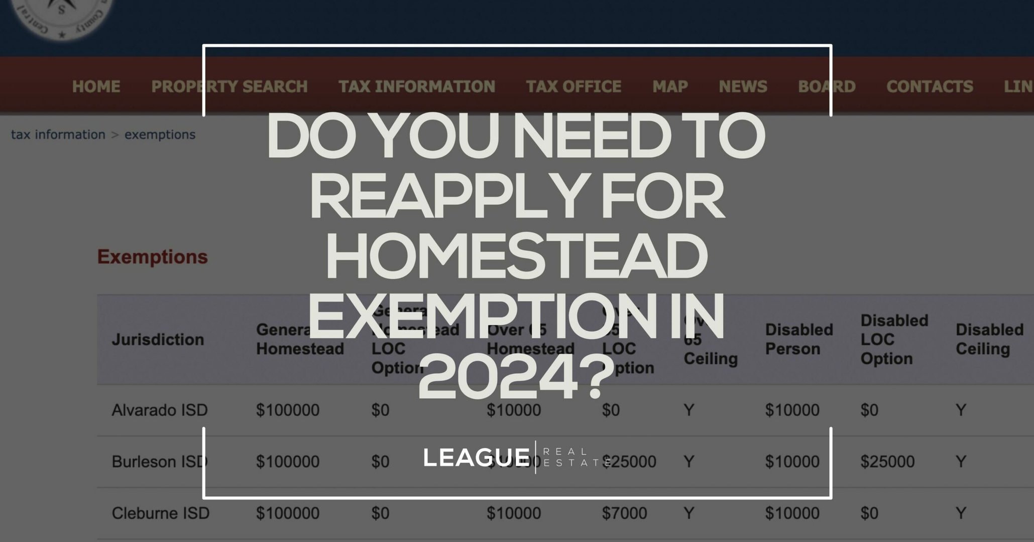 As a Texas homeowner, staying informed about changes in property tax laws is essential to ensure you continue to benefit from valuable exemptions like the homestead exemption. With the recent law mandating reapplication every five years, be on the lookout for notifications from your local appraisal district. Take proactive steps to verify your eligibility and continue enjoying the benefits of the homestead exemption. After all, a little awareness can go a long way in keeping your property taxes in check. As always, we're here with you every step of the way. Feel free to reach out to your LEAGUE agent; they’ll be happy to help with any questions! #ReadyToServe